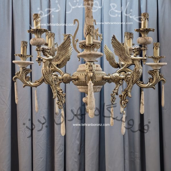 لوستر ترکیبی سنگ طبیعی و برنز برای منازل خاص و لاکچری به کار برده می شود سنگ های این محصولات از سنگ طبیعی در رنگ ها و طرح های مختلف تولید می شوند که دارای براقیت بالا و ظرافت خاصی می باشند .