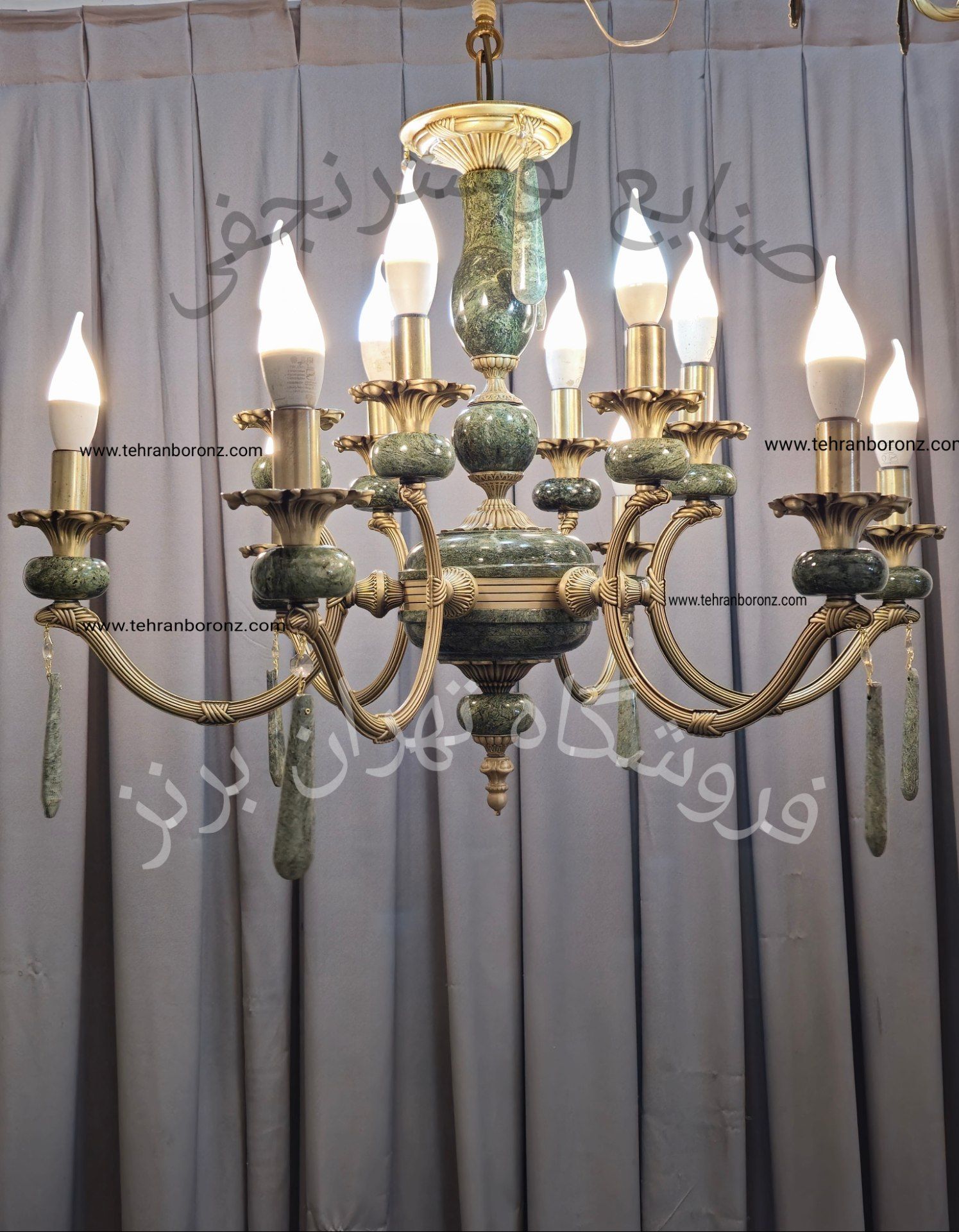 لوستر برنز برنجی۴شاخه نئوکلاسیک ترکیب سنگ طبیعی یشمی کد1086