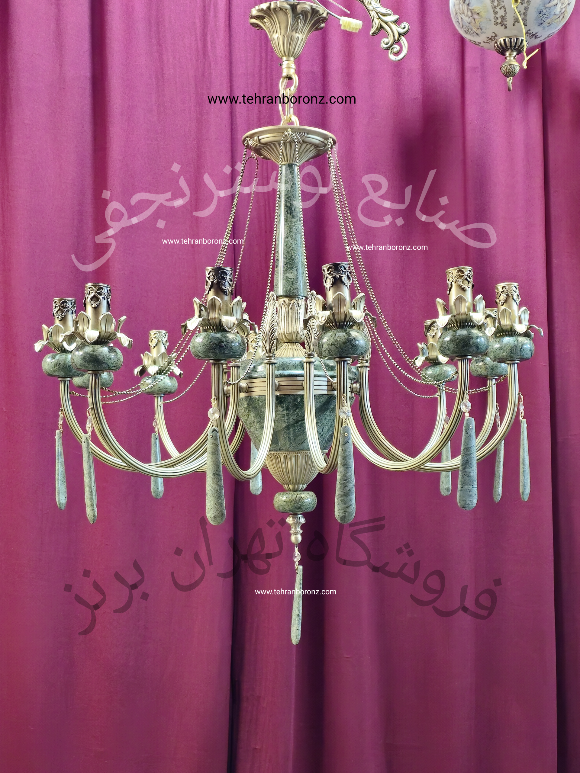 لوستر برنز سنگی طرح لیانا ۱۲شاخه سبز یشمی